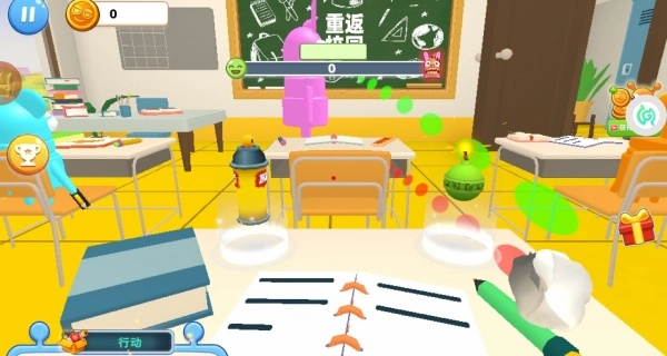 4、在老师讲课的间隙找准回头的时机,把道具对准老师投掷来触发恶作剧,通过逐步推进剧情来解锁战斗环节。