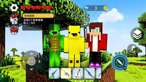 随机空岛生存手机版是一款集方块建造、沙盒探索和塔防元素于一体的冒险佳作。玩家将进入随机生成的空岛世界,通过伐木、挖矿、捕猎等途径收集各类资源,利用合成系统制作实用工具与强力武器,还要完成击败特定敌人等任务,在充满未知的空岛里奋力生存并不断发展。