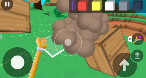 4、通过左侧摇杆操控移动方向,当靠近目标方块时,点击右侧的操作按键即可对其进行破坏。