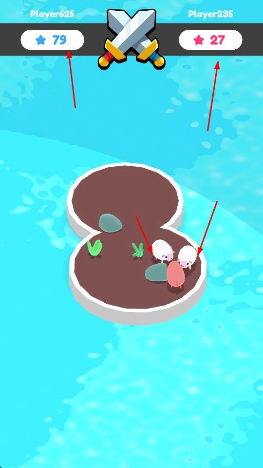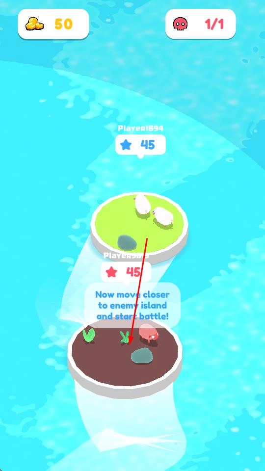 进入游戏界面后,留意金币数量与对战标识,操控角色所在的岛屿向敌方岛屿靠近。