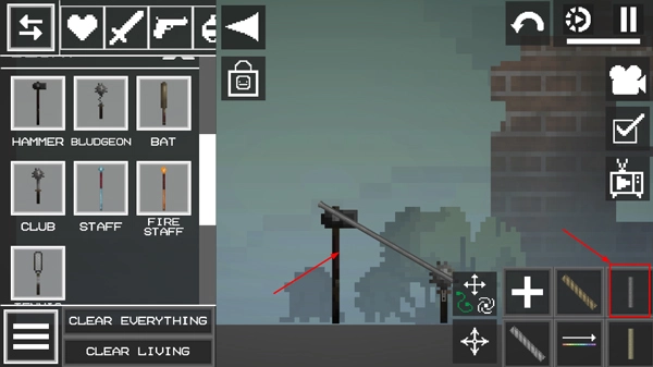 2、进入游戏后呈现的界面如图所示,点击左上角的菜单按钮,在地面上添加两个物品。