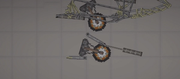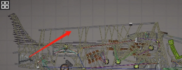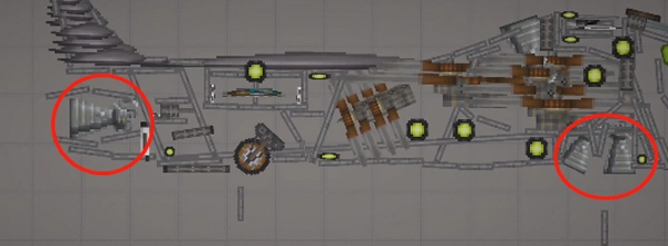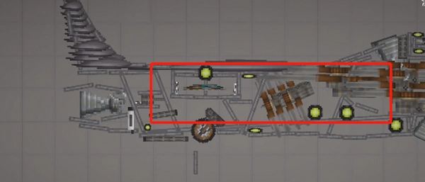 3、需要留意的是,这类不稳定的结构必须加装支柱——也就是机头中间的长铁块,将其设置为无重力且不碰撞的状态,连接到机头外壳就可以了。