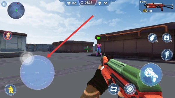 3、进入1-1关卡开始战斗,左手通过虚拟摇杆控制角色移动,右手点击射击按钮攻击敌人,逐步推进关卡进度。