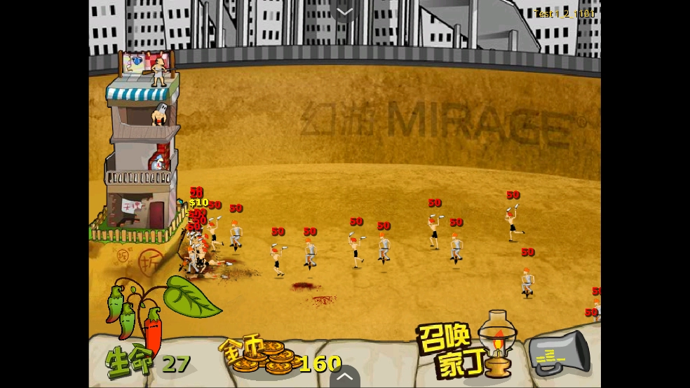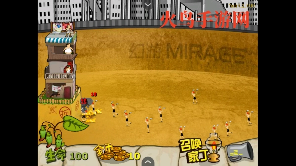 5、当位置被占满后,就不能再召唤更多家丁了,需要通过击杀拆迁队来积攒金币,进而升级家丁。