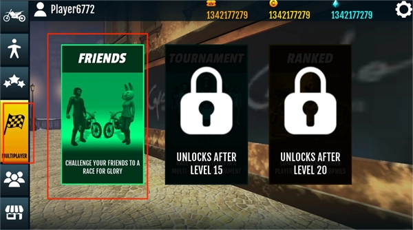 2、在游戏主页的左侧可以添加好友与其进行竞速比赛