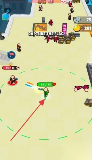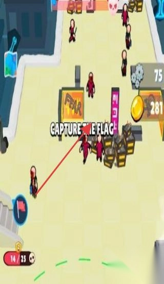 2、朝着箭头所指的【CAPTURE THE FLA】区域推进,冲破敌人的防线,设法夺取旗帜。