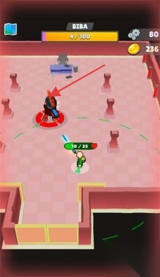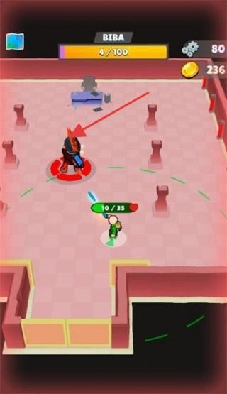 3、在游戏里,去挑战箭头所指向的“BIBA”敌人,借助技能与走位展开战斗,战胜首领就能得到奖励。