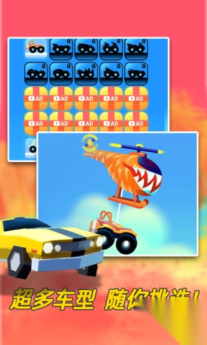 2、游戏里有各种各样的关卡供玩家挑选,每个关卡都具备别具一格的地形规划与障碍布置,玩家完成关卡后能够获取金币和奖励,这些可以用来对车辆进行升级。