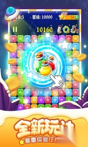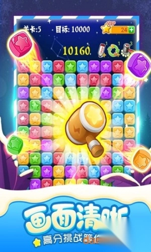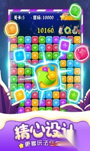 2、视觉体验迎来升级,优化后的色彩搭配更显鲜明协调,每一颗星星都拥有专属的独特光效。消除瞬间的粒子动画流畅又绚丽,为你带来赏心悦目的视觉享受。