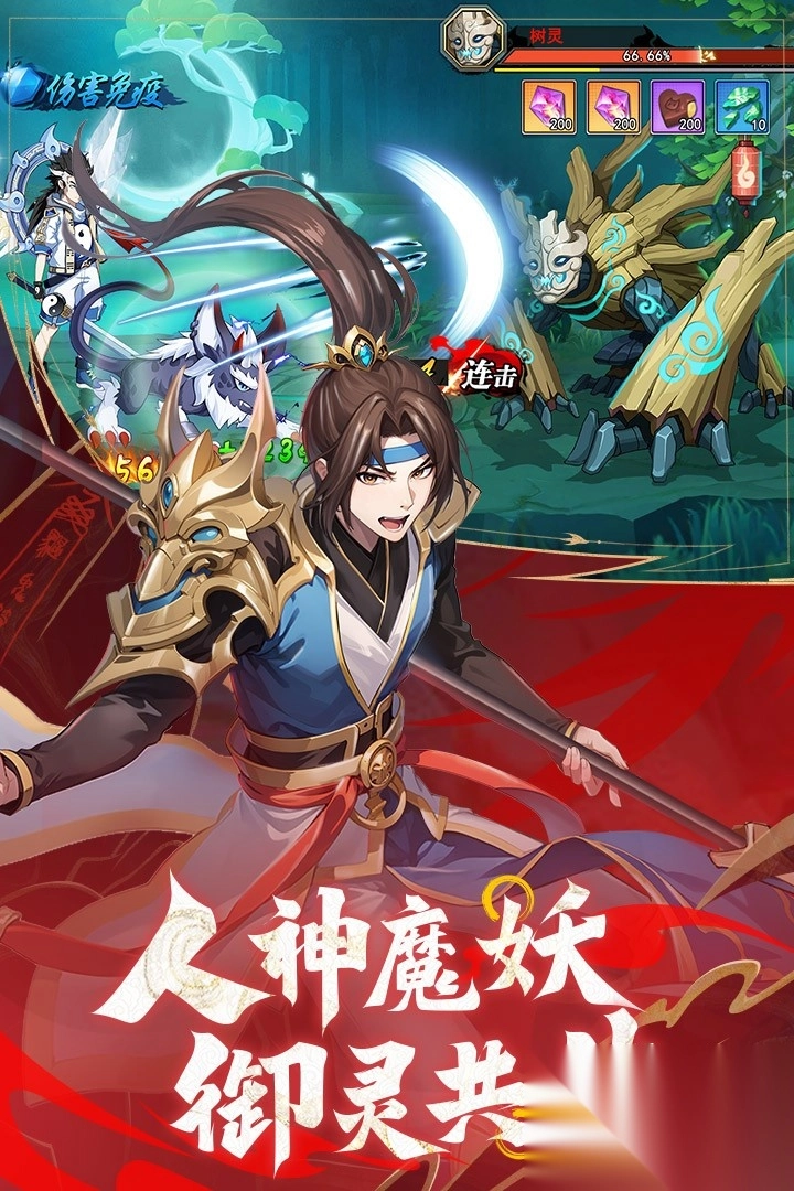 1. 精致绚丽的二次元美术风格,为玩家构建出一个充满奇幻色彩的冒险天地,你需要招募并收集各路英雄,踏上降妖伏魔的征程,守护这片世界的安宁与和平;