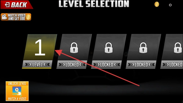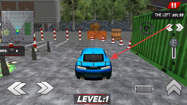 2、进入关卡选择界面后,点击箭头指向的【LEVEL-1】关卡,开启第一场停车任务,熟悉游戏的操作方式与规则。
