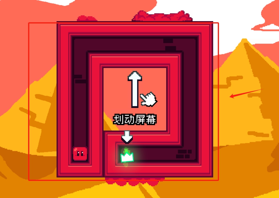 2、通过划动屏幕来操控橙色区域在迷宫中移动,过程中要留意金字塔背景以及红色的障碍物。