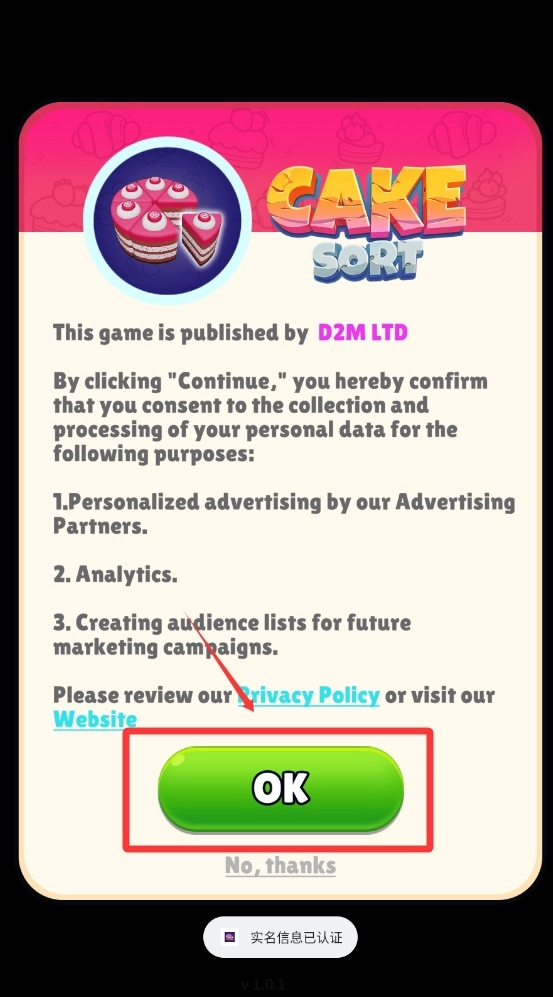 进入游戏加载界面后,点击右下角闪烁的“OK”确认按钮,系统就会进入以甜点为主题的游戏场景,同时播放轻松愉悦的背景音乐。