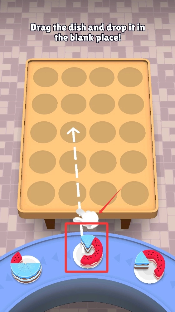 2、依据屏幕顶部呈现的指引提示,用手指滑动操作把彩色蛋糕拖移到指定位置,需要留意的是每个关卡都设有专门的摆放规范和步数约束。