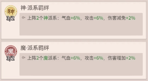 正派羁绊:当战场上同时上阵3名正派英雄时,队伍整体的气血与攻击将各提升5%。