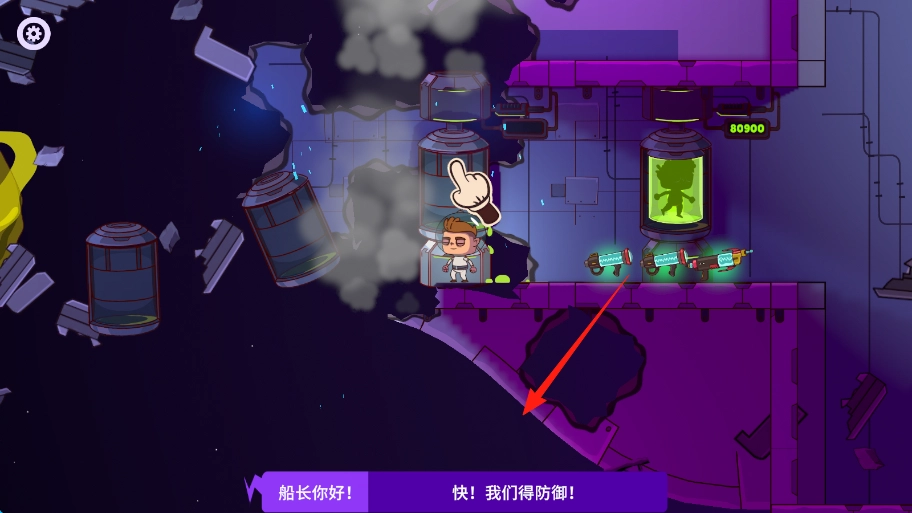 1、按照指引操作,控制角色移动穿过破损的区域,前往指定的位置,为防御行动做好准备。