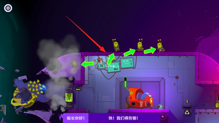 3、操控角色,借助武器对袭来的敌人发起攻击,依照箭头指示的路线,敏捷地转移防御位置。