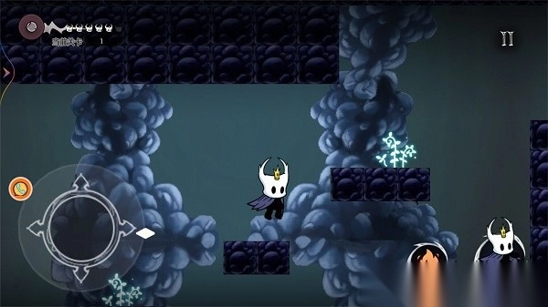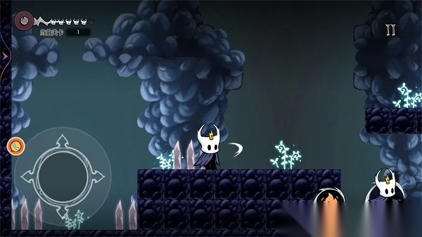 1、操控主角小骑士,当遇到敌人(例如图中的怪物)时,点击攻击键(红箭头标识),使用骨钉展开战斗。