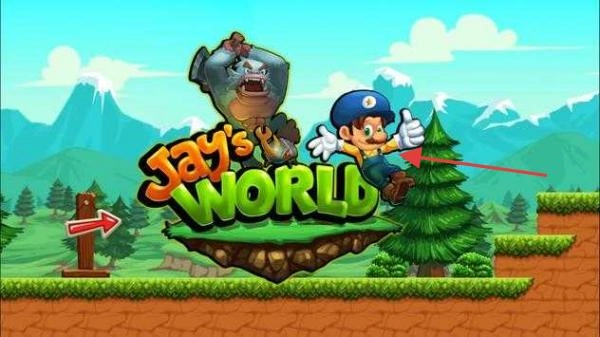 1、进入【Jay'sWORLD】,操控右侧戴着蓝色帽子的角色,沿着草地向前行进,跟随箭头的指引,开启这场冒险,探索周边的场景。