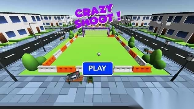 1、打开【CRAZYSHOOT】界面后,点击蓝色的【PLAY】按钮,即可进入足球射击关卡,随后就可以准备操控足球完成射门动作了。