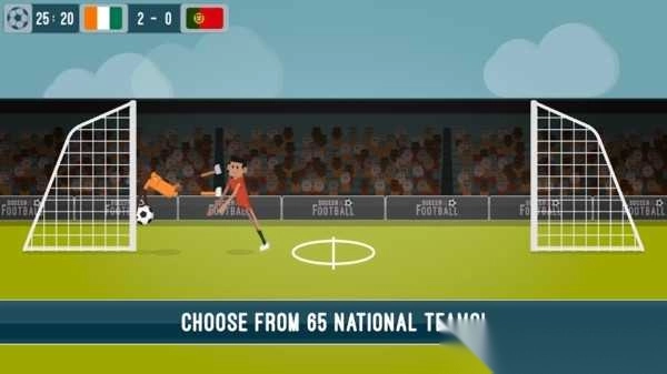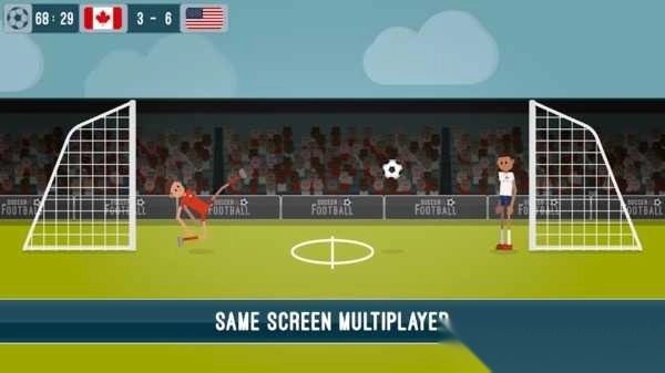 1、2D卡通画风:运用简洁明快的2D动画风格,角色动作设计夸张诙谐,结合Q版球场场景,打造出轻松欢乐的足球竞技氛围。
