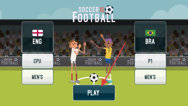1、选择英格兰队(ENG)或巴西队(BRA),将ENG设为CPU操控,BRA设为P1操控,点击【PLAY】按钮即可开启足球赛,体验两队对决的乐趣。