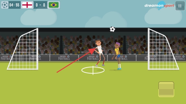 2、比赛过程中,控球球员需进行争顶、传球,避开对方防守,寻找合适时机完成射门,同时要留意比赛时间(04:55)和当前比分,全力争取进球得分。