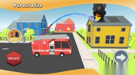 2、若遇到建筑火灾,点击【POLICE】(警车)图标,随后驾驶警车前往火灾发生地点——理发店旁边那栋着火的楼。