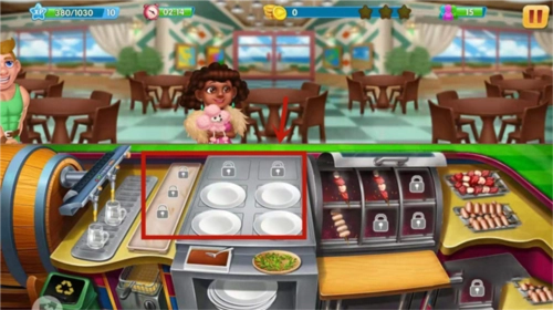 1、游戏开局的第一张牌,优先解锁空盘,提前放置面包这类基础食材,等顾客点餐后就能直接组装,这样能节省不少时间。
