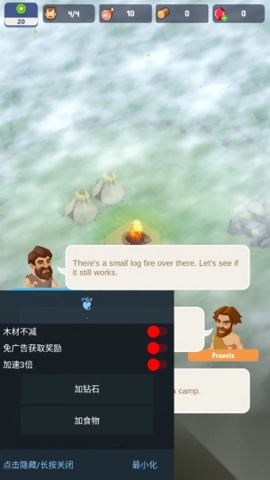 ,帮助更多幸存者存活下去……不断拓展自己的领地、增加人口,让居民们不再受饥饿困扰。必须让篝火持续燃烧来驱散雾气,不然大家都会生病。那天夜里十分危险,没人再继续干活了。得赶紧把飞船修好,然后尽快离开这个地方。