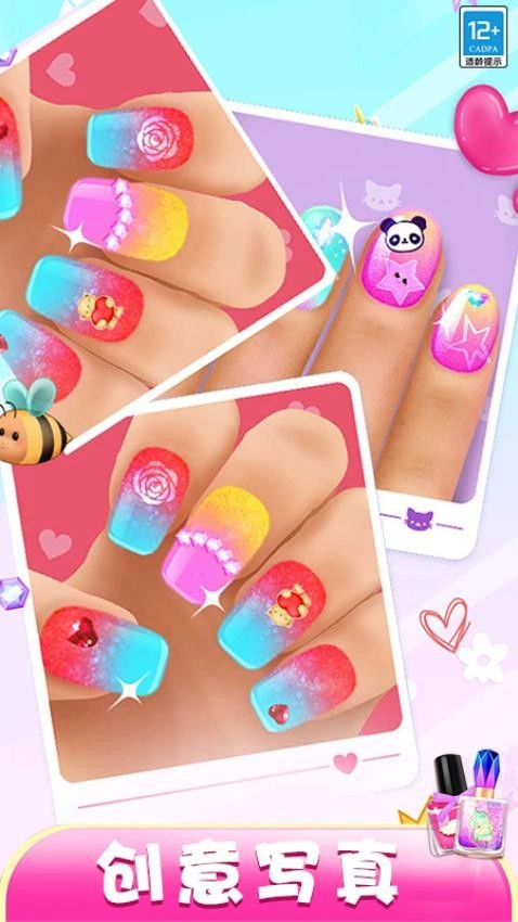 2、那些璀璨华丽的饰品也别忘了搭配,最后记得给闪耀的指尖来一组特写,拍出来的效果绝对惊艳。游戏后续还会解锁更多亮眼的写真场景,让你在趣味十足的美甲创作过程中,收获满满的放松感,体验也会更加丰富有趣。