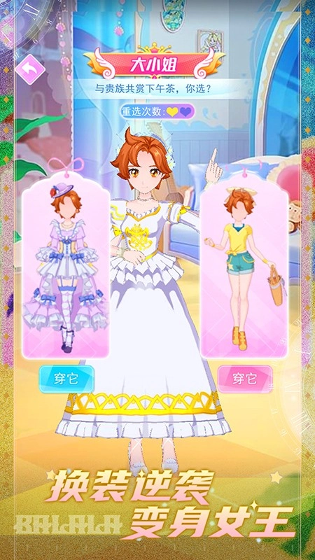 这是一个有趣的换装挑战,你可以尝试各式各样的穿搭,根据游戏场景调整造型,最终华丽变身为女王。