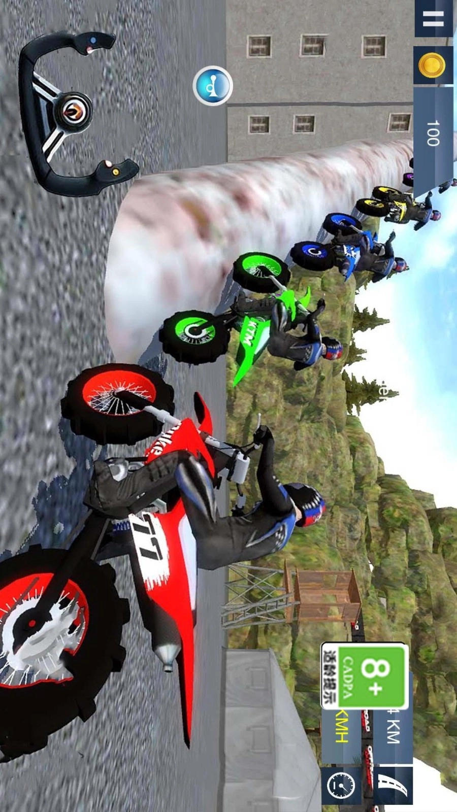 5、数十款造型独特、个性鲜明的摩托车供你选择,你可以消耗金币来提升它们的各项属性或是马力值。