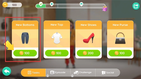 2、使用金币购买【NewBottoms】之类的服饰,通过提升角色外观来达成任务要求。