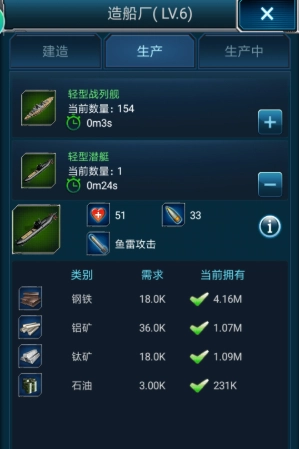 10、游戏里小号的培养也十分关键。小号主要有战斗号与羊号两类。战斗号的培养重点在于提升内矿产量或战力水平,羊号在前期能提供矿资源支持,到了后期则对获取战功、扩大军队规模以及增加每日声望有帮助。特别是后期阶段,玩家要依据实际情况升级船厂,以保障各类资源的平衡与发展。