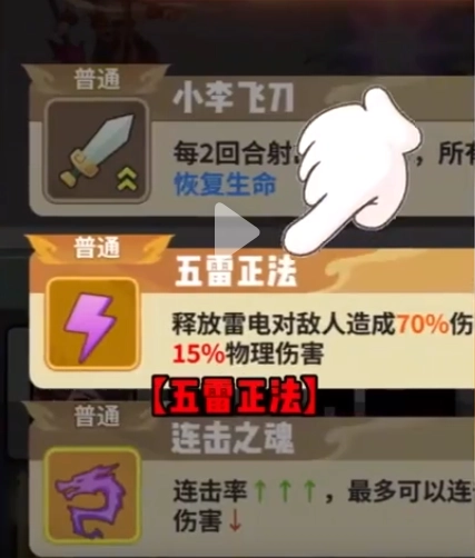 1、开局我们直接选择【五雷正法】,它能够释放闪电,对敌人造成伤害;