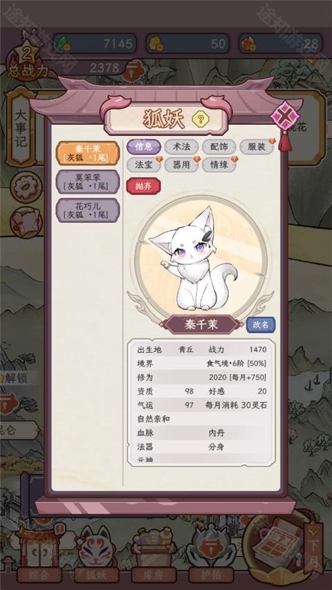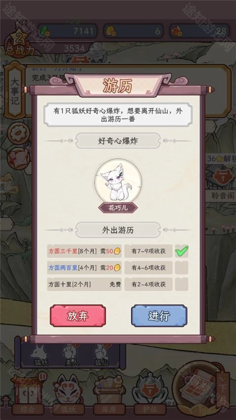 2、借助日常陪伴、任务挑战与资源供给等途径,助力狐妖实现从一尾到九尾的进化。
