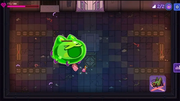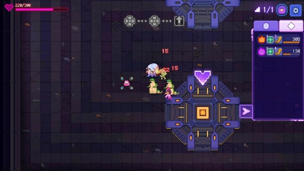 进入房间后,怪兽会在各处出现,击败它们会掉落各类物品。玩家操控角色移动,角色会自动攻击现身的敌人,完成该房间的挑战即可通关。