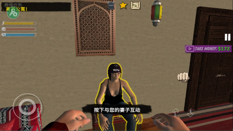 2、进入公寓后,我们可以先走到妻子面前触发互动。