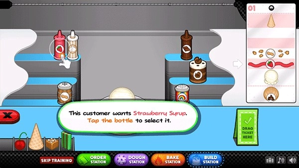 6、这位顾客想要草莓糖浆,点击瓶子进行选择。