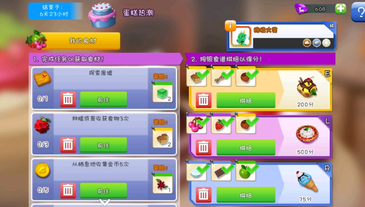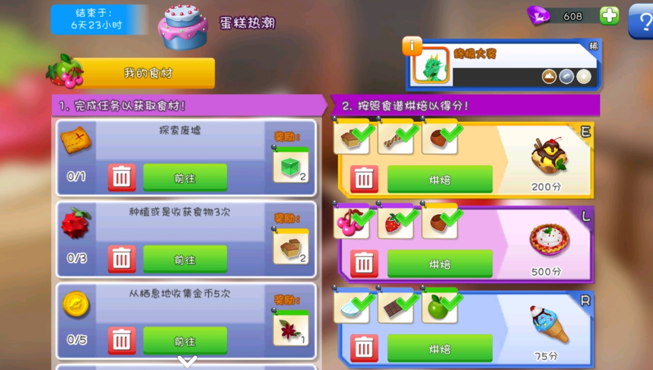 想获取这只龙,得在蛋糕热潮活动里拿到1万的满分,这里给大家分享活动的一些技巧(前提是不使用钻石加速)。