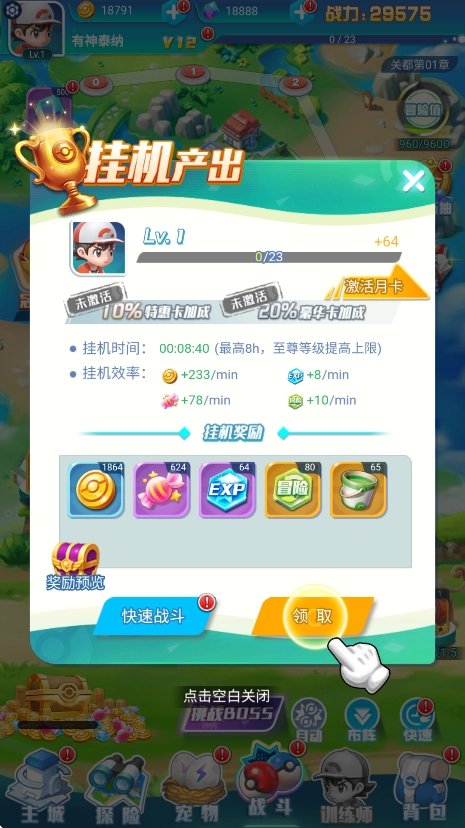 3. 优化挂机减负机制,精灵支持自动战斗与离线收益获取,进阶训练师还能进一步提高挂机奖励