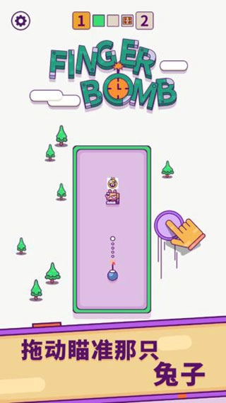 指尖炸弹是一款十分有趣的休闲游戏,玩家要在炸弹引线烧完前,把地图上的所有目标兔子都炸翻。游戏操作很简单,但越往后的关卡,引线燃烧时间会越来越短,关卡要求炸翻的兔子数量也会增加,所以得合理选择炸弹的飞行方向,才能在限定时间内达成目标。
