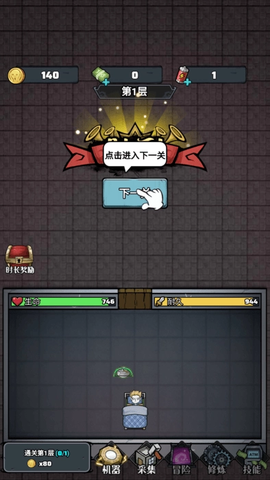 1、玩家进入房间后躺到床上,系统会自动发放金币,这些金币可用于资源的发展与强化。