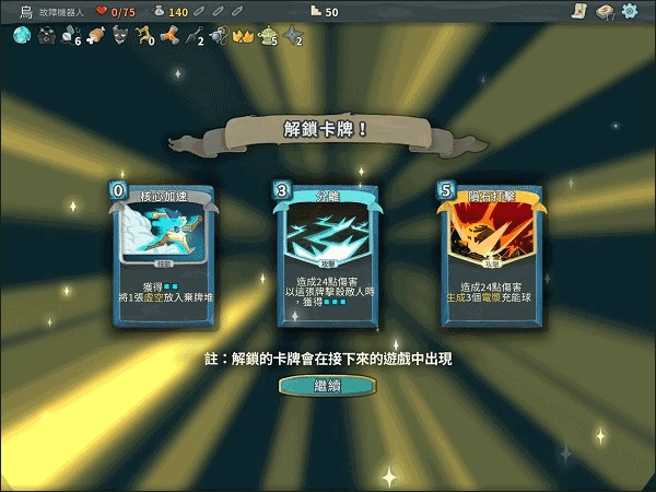 9、把所有怪物都处理完之后,就能得到金币,还能获得一次从三张卡片里选一张的机会。