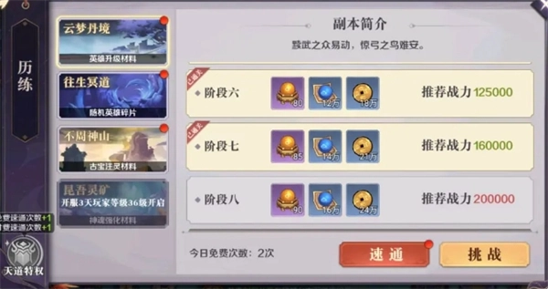 不少人大概是把历练当成副本对待了,每天一上线就先去扫荡。但这么做其实可能会损失一些资源,毕竟前期阶段每天的提升幅度都挺大的。说简单点,就是不如先把自身实力提升上去再去挑战,等挑战到实在打不过的时候,再回来扫荡。要知道,前期哪怕只是领先一点点,都非常关键。