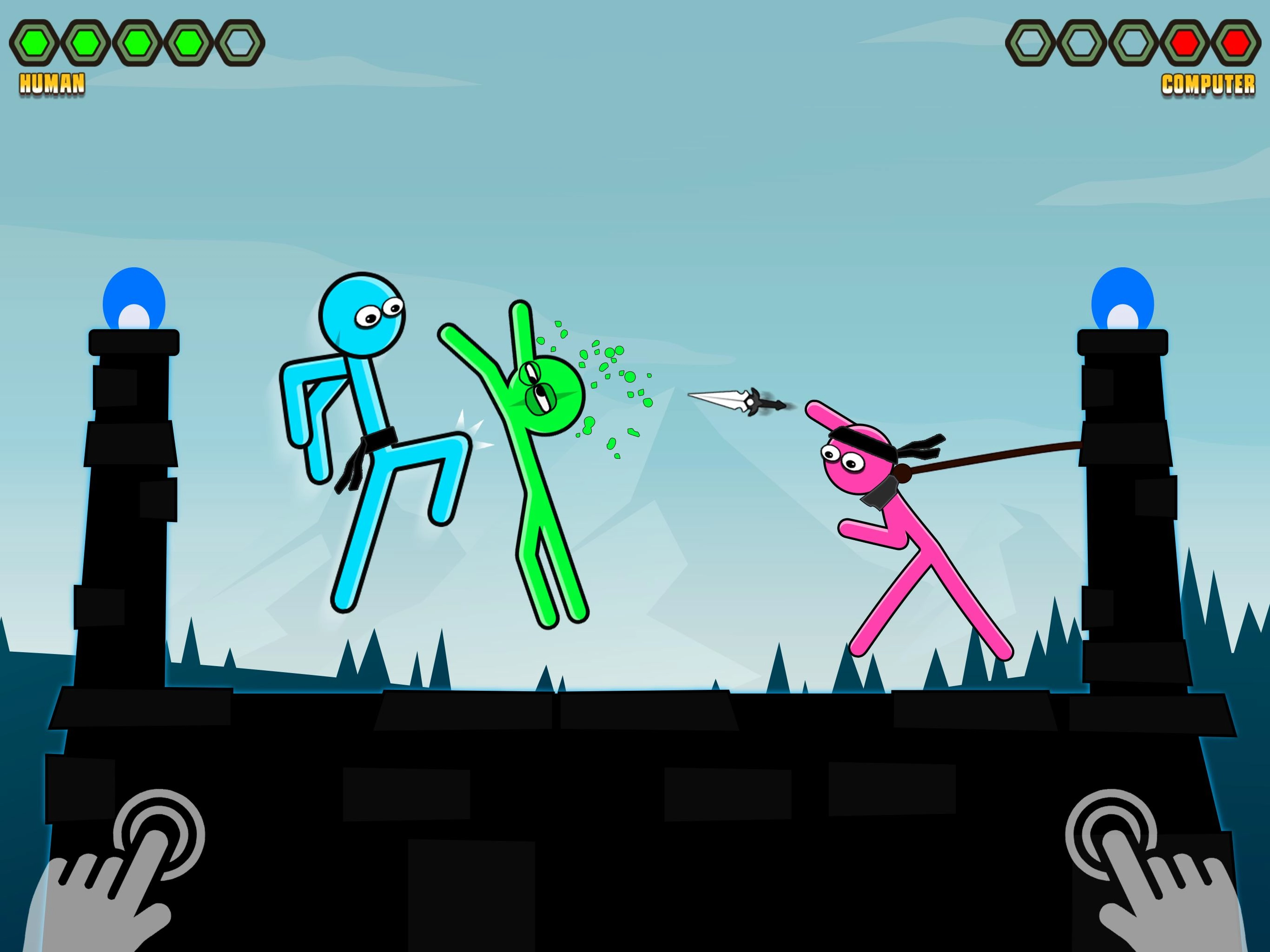 3、在这款游戏里,火柴人持有的武器会影响他的攻击动作以及能够做出的动作。