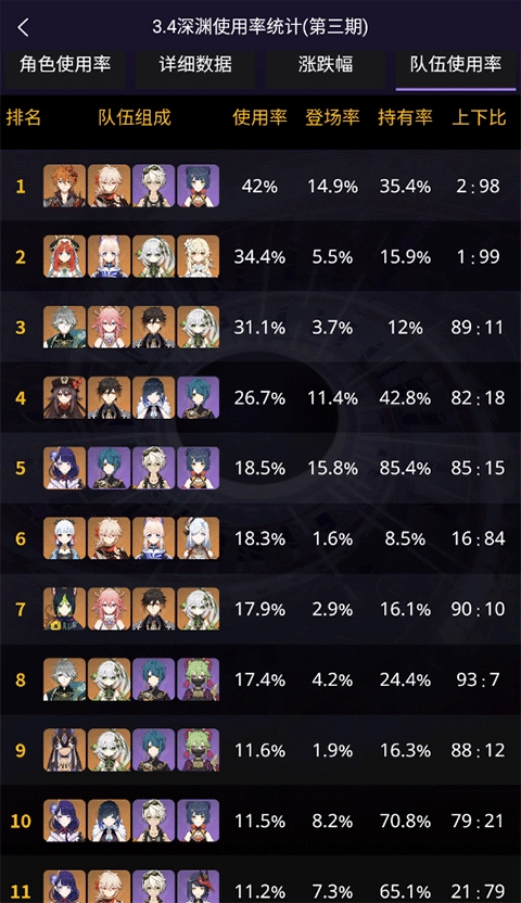 1、先打开正版的提瓦特小助手,然后在更多功能板块里点击队伍使用率排行;