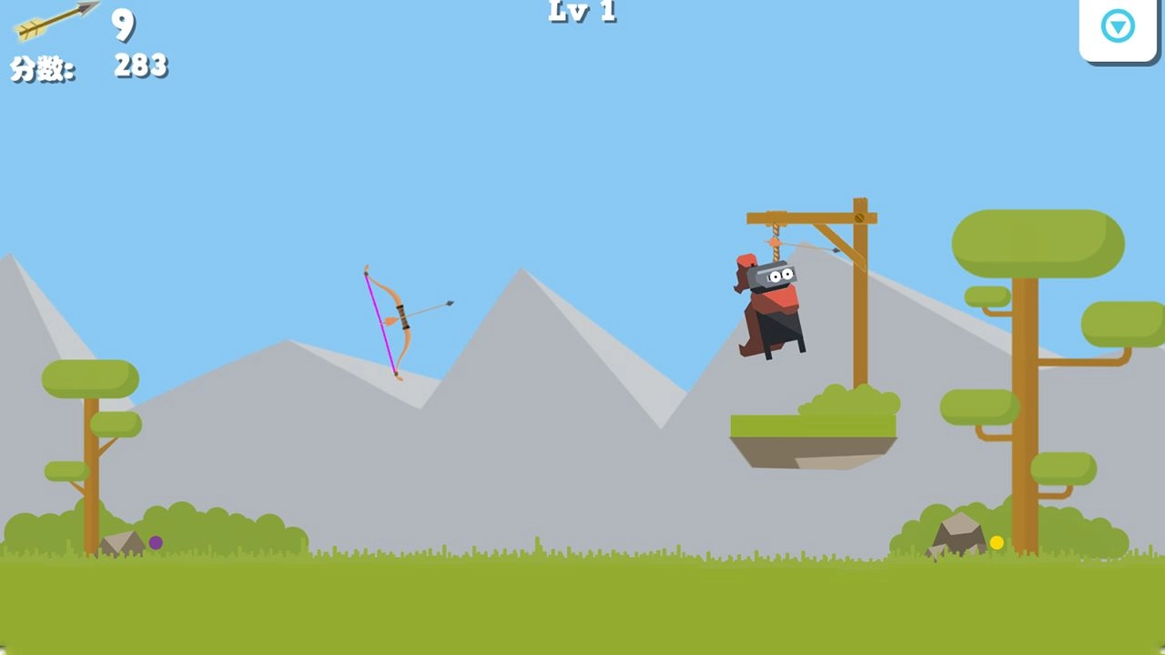 得把控好弓箭的方向与力度,力求精准地射在绳索上。