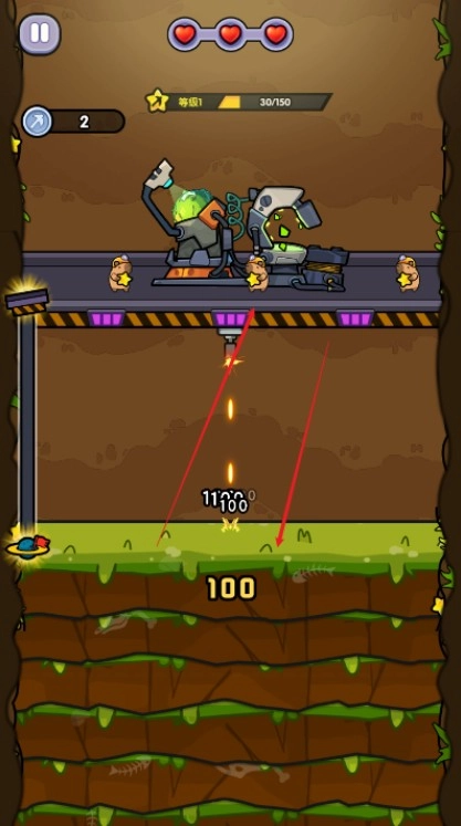 3、坚固矿石、高温熔岩、古代兵器等元素会随机出现,以此考验玩家的反应能力。